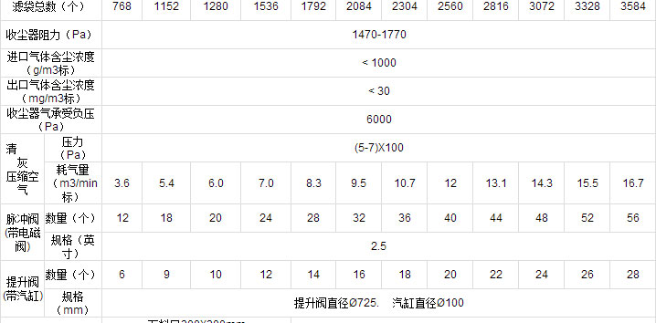 分室噴吹清灰:一個(gè)脈沖閥可同時(shí)噴吹一室(濾袋數(shù)量有32、64、96種規(guī)格系列)。較普通除塵器一個(gè)閥噴吹六條袋,脈沖閥數(shù)量減少6-20倍。