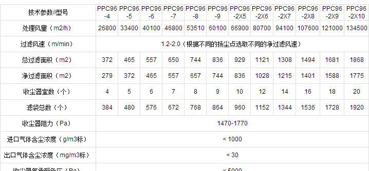 鑫辰FMQD/PPC系列氣箱脈沖袋式除塵器可以根據(jù)用戶不同清灰場況,為用戶提供不同室數(shù)和不同袋數(shù)PPC32、PPC64、PPC96、PPC128等多種規(guī)格。您可以根據(jù)以下參數(shù)表進(jìn)行選型,如您需要技術(shù)支持,您隨時(shí)可以撥打鑫辰服務(wù)熱線:0317-8046444,把您的清灰場況和需求跟我們的專業(yè)技術(shù)人員說明后,我們會免費(fèi)為您提供更安全、合理的除塵解決方案
