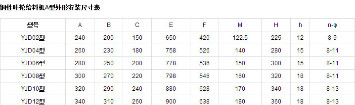 鋼性葉輪給料機(jī)的進(jìn)出口法蘭接口方法首要有兩種,方口為A 型,圓口為B型。YJD-A型星型卸料器指的是法蘭接口方法為方形的卸料器,其運(yùn)用最為廣泛。